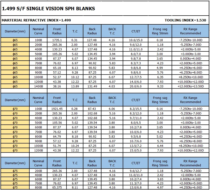 - Customizable Diameter and Index: Available in various diameters (65/70/75mm) and indices (1.499, 1.56, 1.60, 1.67), this product can be tailored to meet the specific needs of customers.